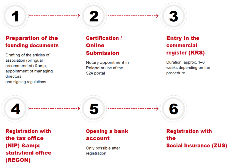 • Preparing all registrations with the Polish Commercial Register (KRS) and authorities