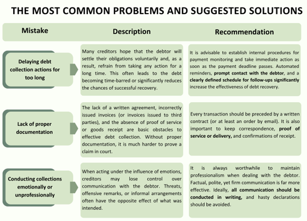 Below you will find an overview of the most common mistakes made in the debt collection process, as well as practical tips on how to avoid them.