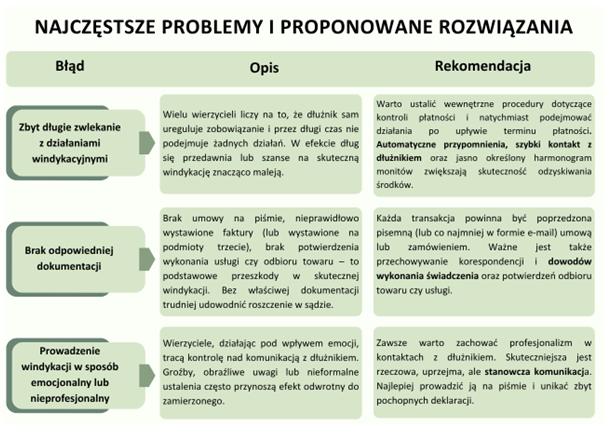 Poniżej znajdziecie państwo omówienie najczęstszych błędów popełnianych w procesie windykacji oraz praktyczne wskazówki, jak ich unikać.