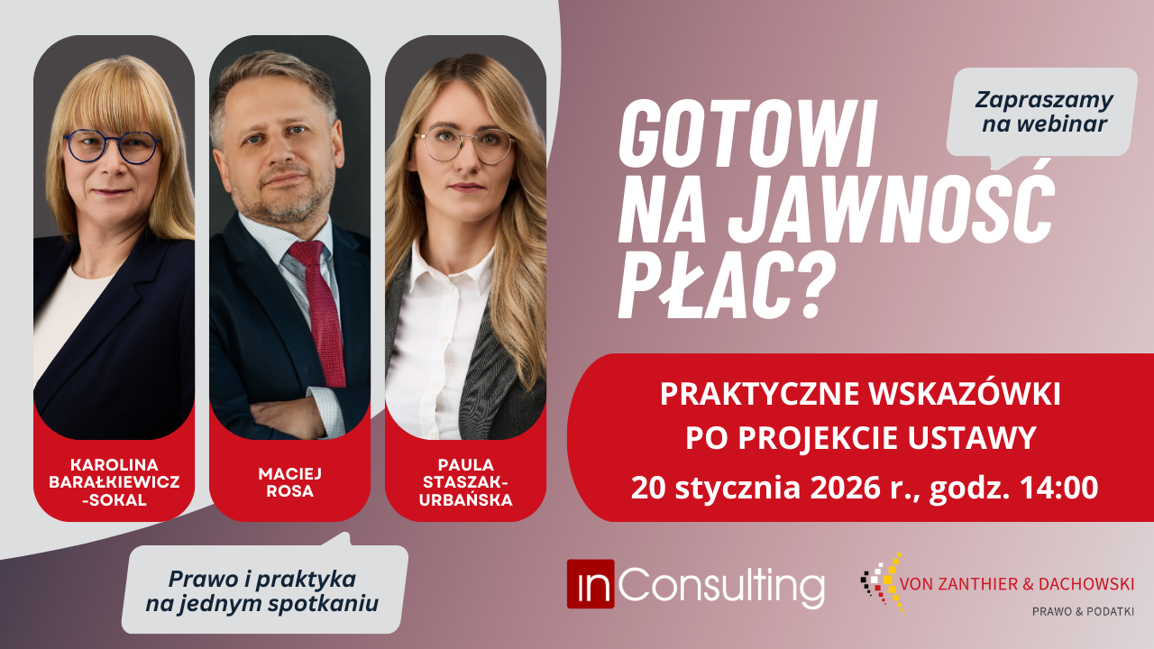 Prelegenci: Karolina Barałkiewicz-Sokal (VON ZANTHIER & DACHOWSKI), Paula Staszak-Urbańska (VON ZANTHIER & DACHOWSKI), Maciej Rosa (InConsulting)