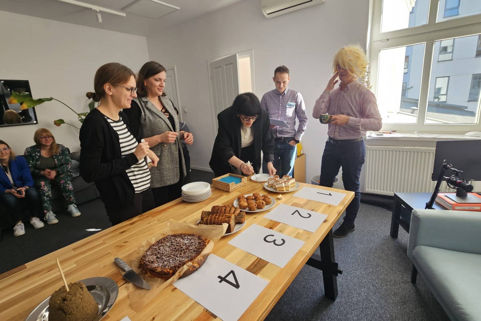 Wyzwanie? Męska załoga upiekła różne ciasta i poddała je ocenie wymagającego jury – naszych wspaniałych Koleżanek! Zadanie nie było łatwe, bo liczyła się m.in. umiejętność wytypowania magicznego składnika i Kolegi, który je przygotował.